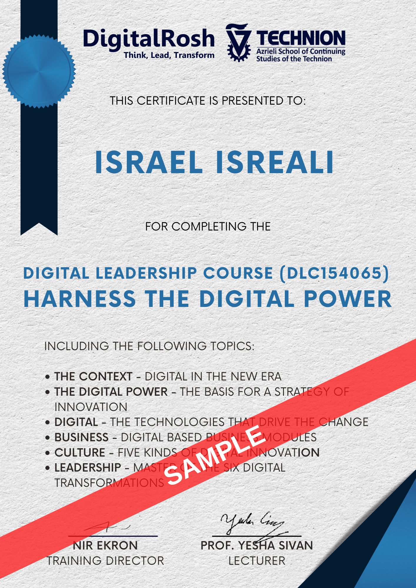 הקורס “לרתום את הכח הדיגיטלי” מקנה הבנה ב”שפה” של עולם הדיגיטל והחדשנות, הכרת מודלים עסקיים מבוססי דיגיטל ותעודת הסמכה מהטכניון.